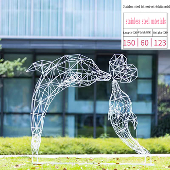 Sala espositiva all'aperto in acciaio inossidabile illuminata con delfino cavo