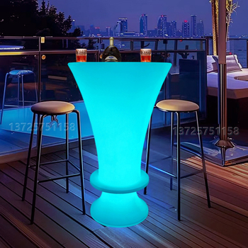 높은 의자 의자가있는 빛나는 야외 칵테일 파티 바 테이블 거실 엔터테인먼트를위한 플라스틱 KTV 가구 및 티 테이블